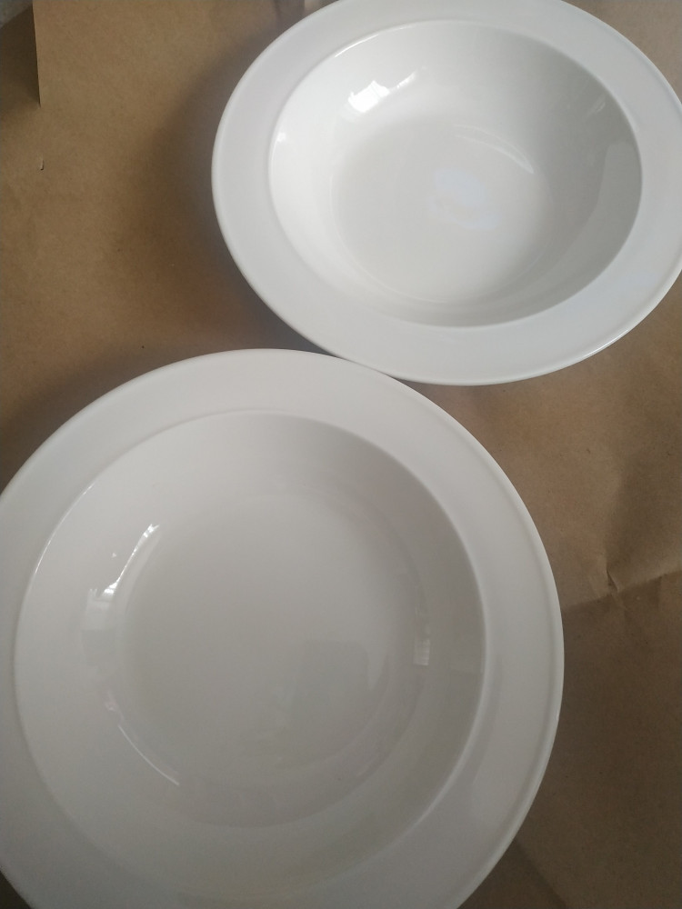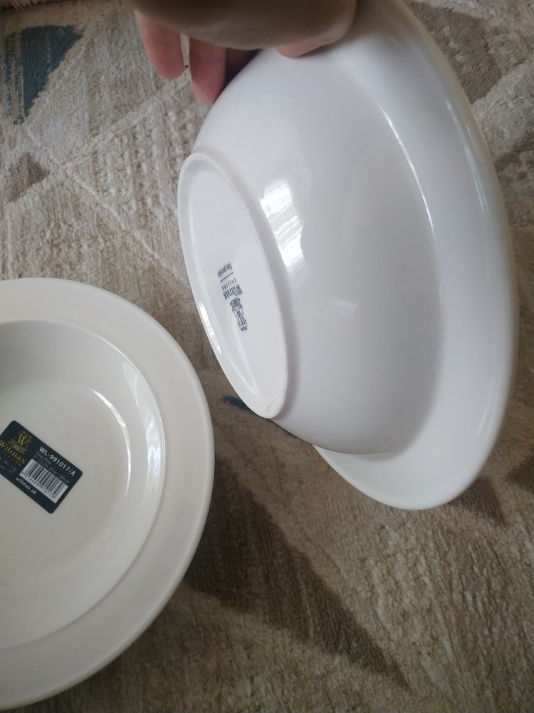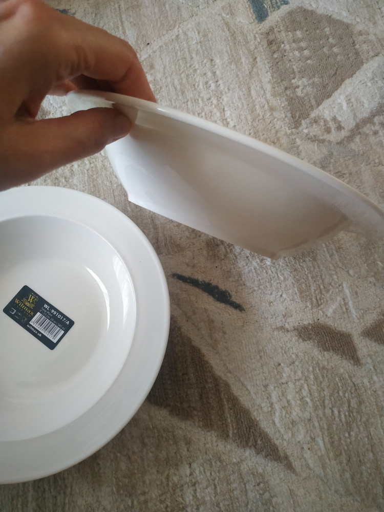 Брала пару штук себе и дочке для супа. Мне понравились,для меня достаточно глубокая ,тарелка не мелкая имеет вес..не сказать,что лёгкая,но мне очень нравится. Наклейка удаляется без проблем полностью без остатка. Цвет имеет молочный,тёплого оттенка как я люблю. Не кипенно -белая ,кому это важно. Прилагаю фото для остальных покупателей,что бы было понятней. Я довольна не жалею о покупке. Что делала ,то и получила. Упаковано на совесть ,доставка супер. Спасибо Флип,Вы лучшие