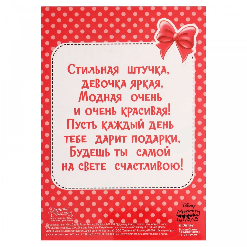 Disney Открытка с магнитом «Минни Маус»В данный момент этот товар отсутствует в продаже. Возможно, у нас найдется аналогичный или похожий товар здесь. Серия: Минни Маус Удивите малышей уникальным сувениром с любимым персонажем! Открытка с магнитом «Минни Маус», непременно порадует ребёнка стильным дизайном и ярким исполнением. Полимерный магнит будет долгие годы украшать холодильник или другую металлическую поверхность. |