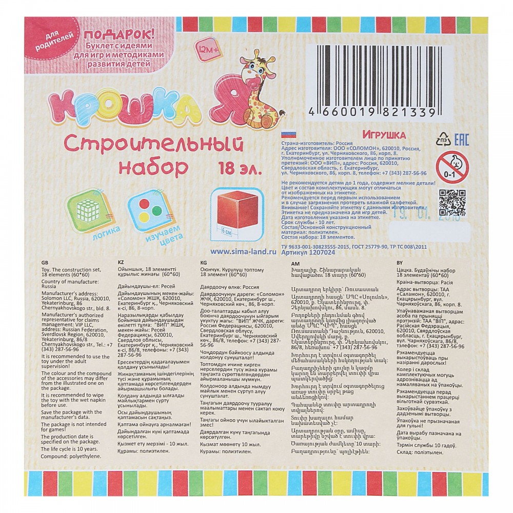 Крошка Я Строительный набор, 18 элементов 6х6 см-40% +101