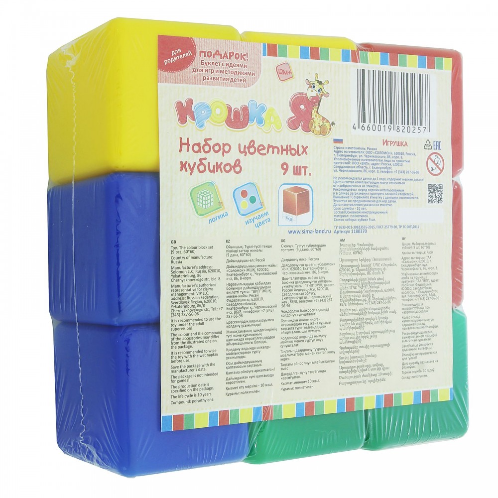| Крошка Я Набор цветных кубиков, 9 штук 6х6 см+60 (бонусов)