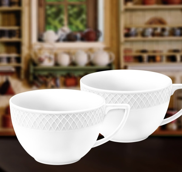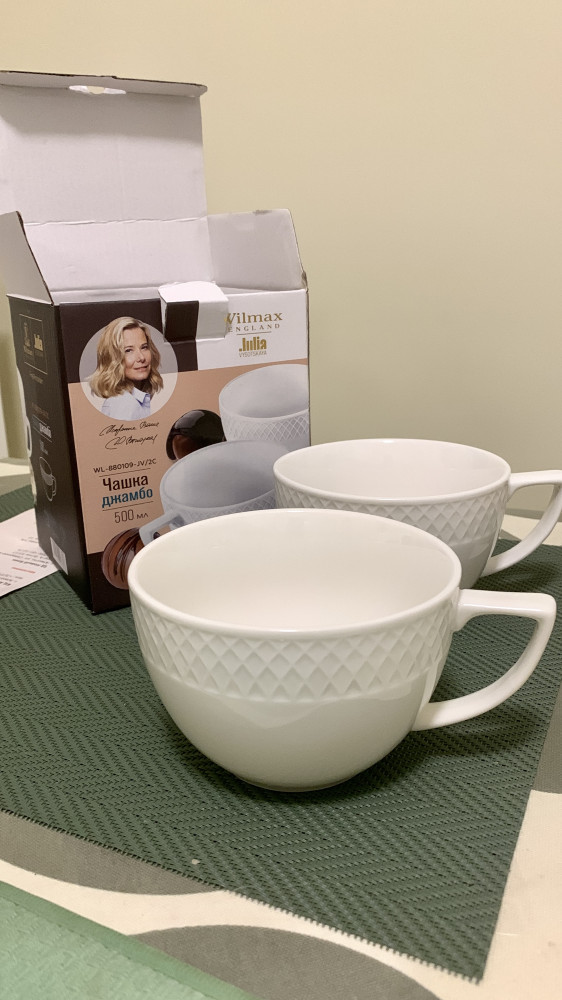 Очень хорошие чашки, просто неправильное описание. Описание необходимо подкорректировать! Чашки плотные, немного тяжелые, это видно на фото. Я их хотела купить в местном ТРЦ, разобрали, - заказала на FLIP - цена хорошая! Специально взяла эти чашки под капучино или латте 0,5, как в кофейнях наливают, т к высокие бокалы иногда надоедают. А в этих и чай можно вкусный с фруктами сделать и капучино сразу огромную порцию. Так что все с чашками в порядке, что видел их в других магазинах. Они белые, сверкающие, ромбы изогнутые, хорошие фирменные чашки.