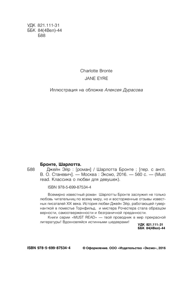Джейн ЭйрВ данный момент этот товар отсутствует в продаже. Возможно, у нас найдется аналогичный или похожий товар здесь. Серия: Must read. Классика о любви для девушек Всемирно известный роман Шарлотты Бронте заслужил не только любовь читательниц по всему миру, но и восторженные отзывы известных писателей XIX века. История любви Джейн Эйр, работающей гувернанткой в поместье Торнфильд, и мистера Рочестера стала образцом верности, самоотверженности и безграничной преданности. Книги серии «MUST READ» — твой проводник в мир прекрасной литературы! Вдохновляйся истинными шедеврами! |