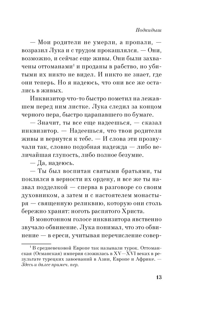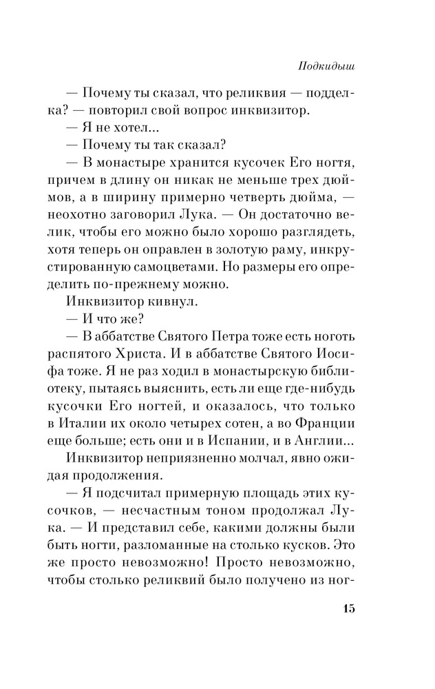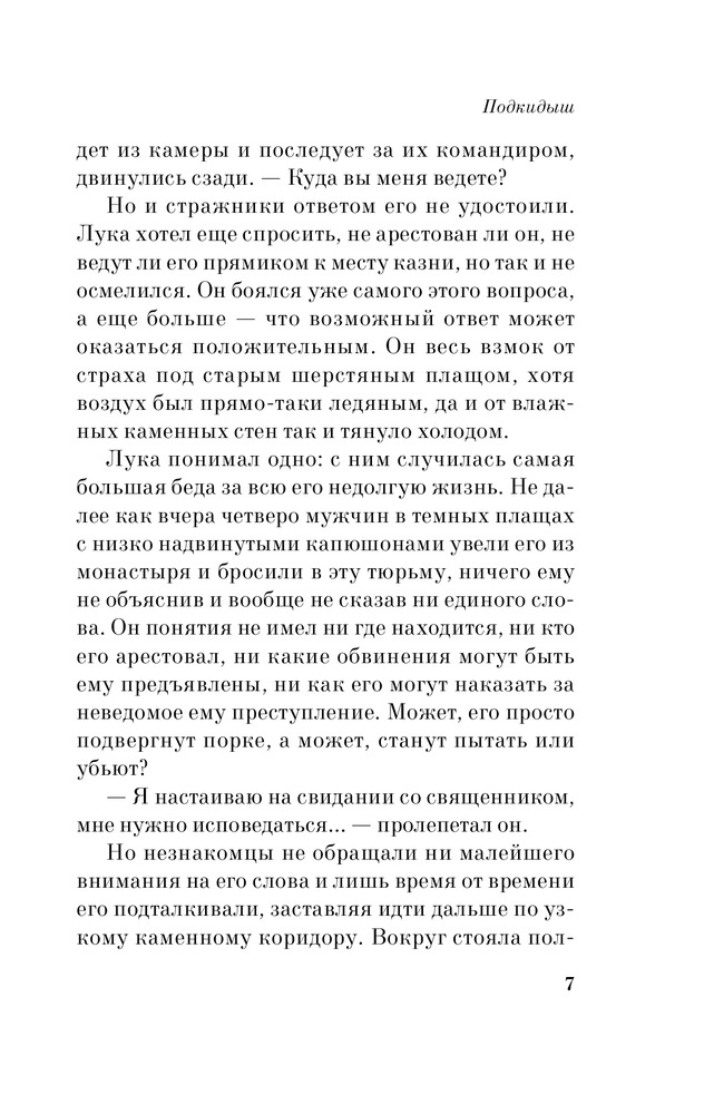ПодкидышВ данный момент этот товар отсутствует в продаже. Возможно, у нас найдется аналогичный или похожий товар здесь. Серия: Pocket Book (обложка) 1453 год. Признаки конца света повсюду. Обвиненного в ереси и изгнанного из монастыря, семнадцатилетнего красавца Луку Веро нанимает таинственный незнакомец. Лука должен вести записи событий, предвещающих последние времена. Приказы, запечатанные в конверты, направляют Луку в путь. Главная цель его путешествия — нанести на карту Европы все страхи и ужасы христианского мира... Изольда, юная аббатиса женского монастыря, стала монахиней не по своей воле. В монастырь ее отправили родственники, чтобы прибрать к рукам богатое наследство девушки. Но не все ладно в аббатстве. Монахини сходят с ума от странных видений, гуляют во сне и демонстрируют кровоточащие раны. Прослышав об этом, Лука приезжает в монастырь, намереваясь обвинить его настоятельницу в колдовстве. Два юных сердца не могли не встретиться. Но зарождающееся чувство столкнулось с темным ужасом Средневековья — с колдовством, оборотничеством, безумием... Любовь и страдание, таинственный Орден Тьмы и истинная вера — все это в новом романе автора супербестселлера «Еще одна из рода Болейн»! |