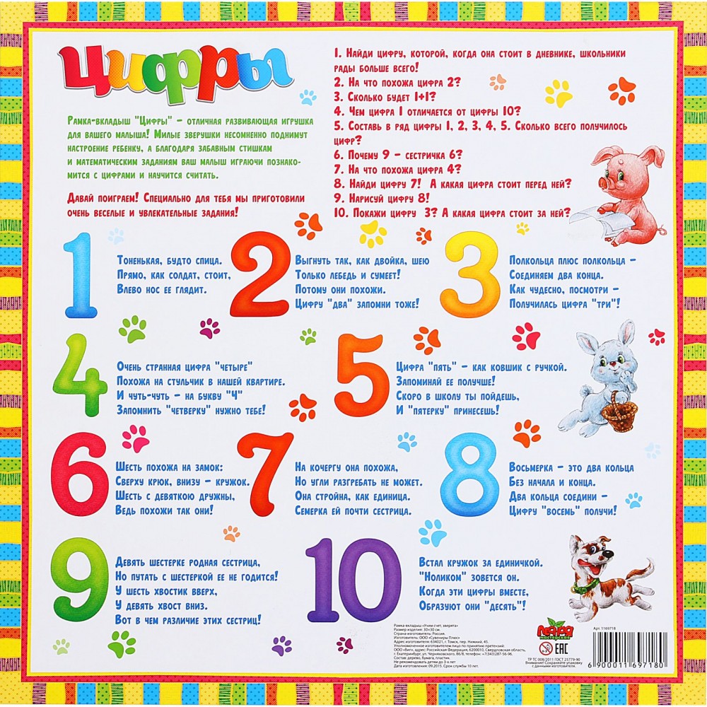 Лесная мастерская Рамка-вкладыш «Учим счет зверята»В данный момент этот товар отсутствует в продаже. Возможно, у нас найдется аналогичный или похожий товар здесь. Для малыша мир полон удивительных загадок и открытий, увлекательных головоломок и постоянного поиска решений. Поддержать эту врождённую любознательность поможет рамка-вкладыш. Она познакомит вашего ребёнка с цифрами, а на обороте с игрой прилагаются стишки и математические задания. |