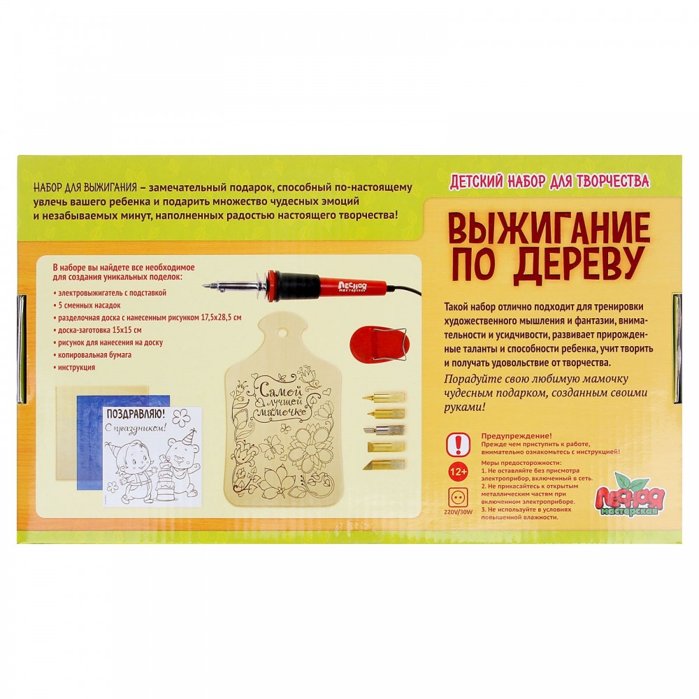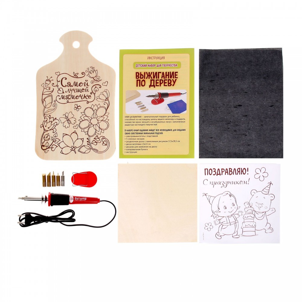 Лесная мастерская Набор для выжигания и росписи по дереву «Самой лучшей мамочке»В данный момент этот товар отсутствует в продаже. Возможно, у нас найдется аналогичный или похожий товар здесь. Когда-то наши родители выжигали по дереву паяльником, а те, кому особенно повезло, специальным прибором — пирографом. Однако мало кто из представителей современной молодёжи может похвастать таким же умением. |