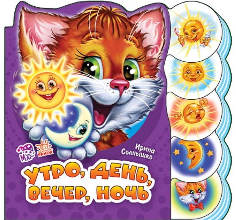 Лидия Книжки этой серии всегда просто замечательные! И эта очередная книжка - тоже. Яркие краски, содержание.доступное для малышей. Хорошо показаны различия "Утро", "День", "Вечер", "Ночь". Текст коротенький, но (как и всегда) интересный.