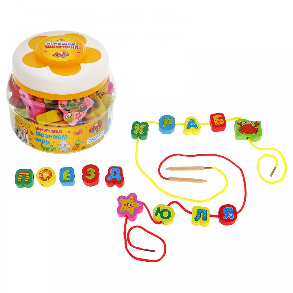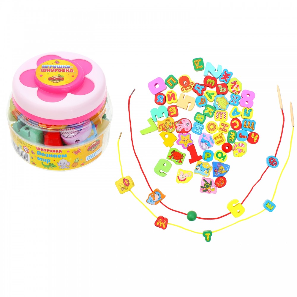 | Лесная мастерская Шнуровка в банке «Мы познаем мир», 60 элементов, цвет в ассортименте