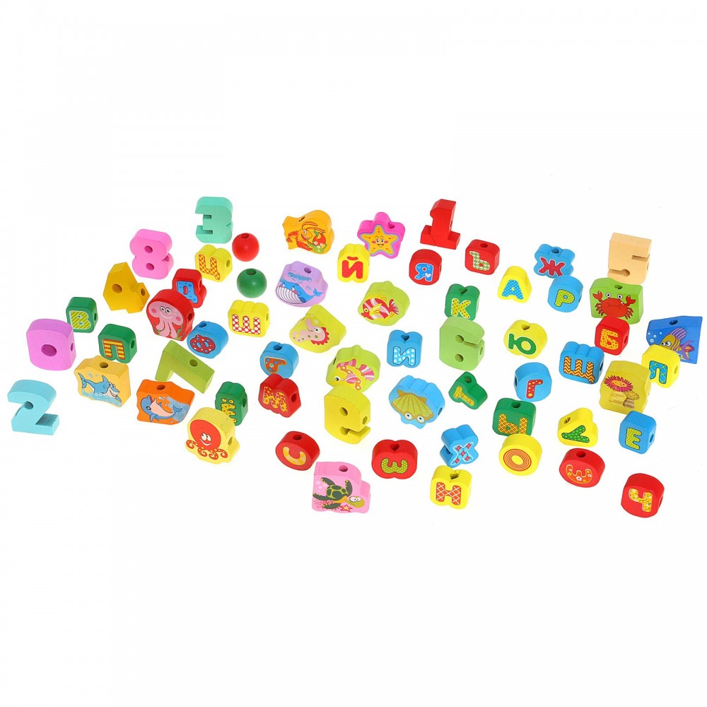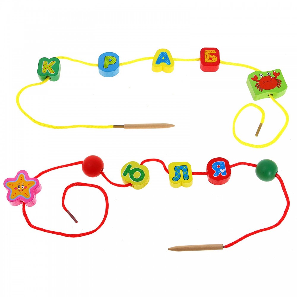 Бусины имеют различную форму, яркие цвета, а также изображения веселых животных и фигурки цифр и алфавита. Дайте малышу задание насадить несколько бусин на шнурок, а после того как он научится это делать, можно усложнить задание. Если ваш ребенок еще не знает буквы, то можно попробовать собрать алфавит. Животных можно рассортировать по разным признакам. Например, отделить диких животных от домашних. Водных от сухопутных. Рассортировать животных по цвету и форме! Ещё деревянную бусы-шнуровку можно использовать как детский конструктор, чтобы построить домик, ракету... в общем, всё, на что хватит фантазии.
