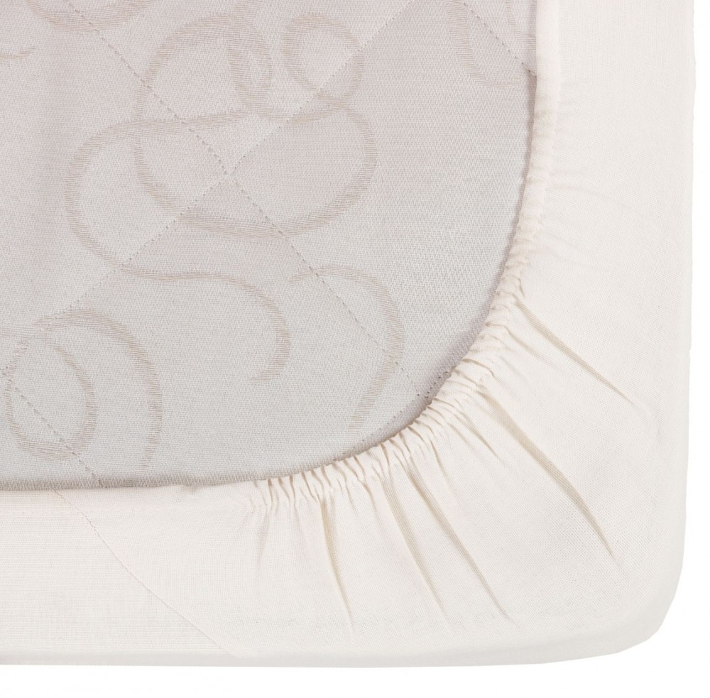 Ткань прекрасная, на матрас надевается хорошо, цвет хоть и не белый, но и не серый, а бежевый. Простыня отлично подошла к одному из комплектов.