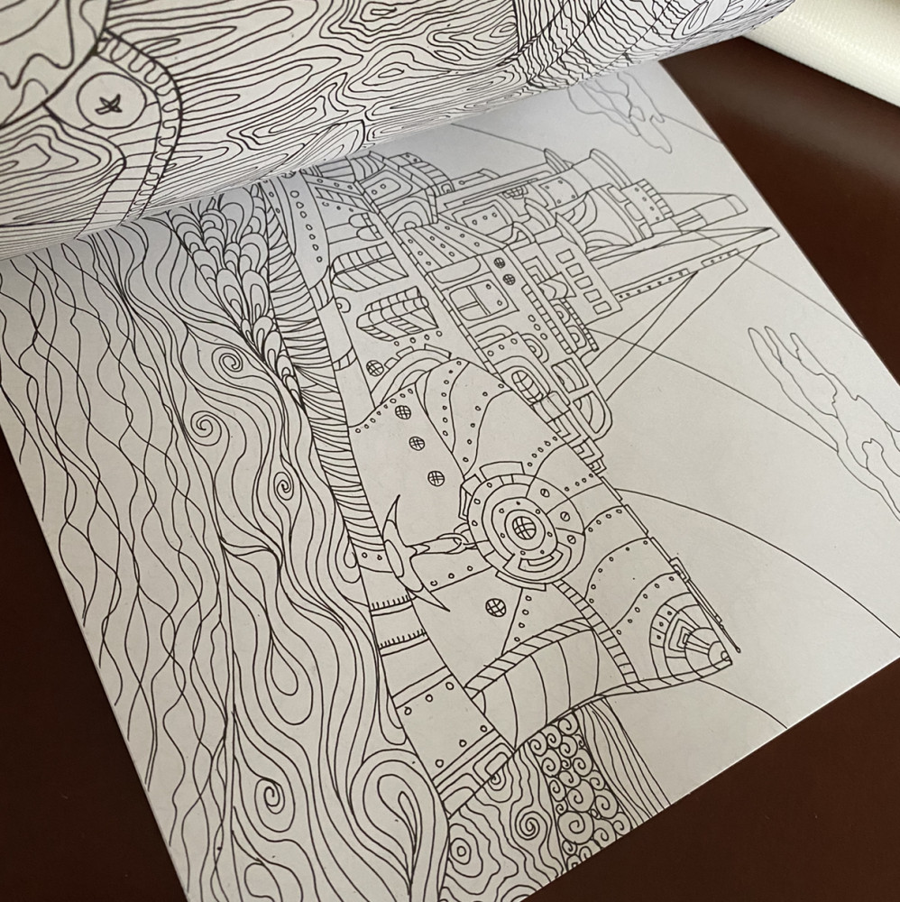 Люблю антистресс. Альбом помогает фантазировать, картины в стиле киберпанка.