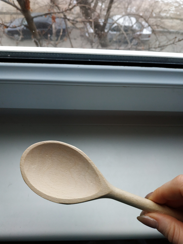 Ложка большая, удобная, из плотного дерева. Хоть немного шероховата, но за такую цену качество просто супер!