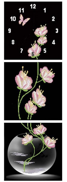 Отличный триптих. На каждом модуле обозначены и цвет (номер), и необходимое количество бисера. Работа уже в багетной мастерской. Останется только часовой механизм установить. Получился необычный подарок для подруги. Рекомендую всем, кто хочет украсить интерьер.
