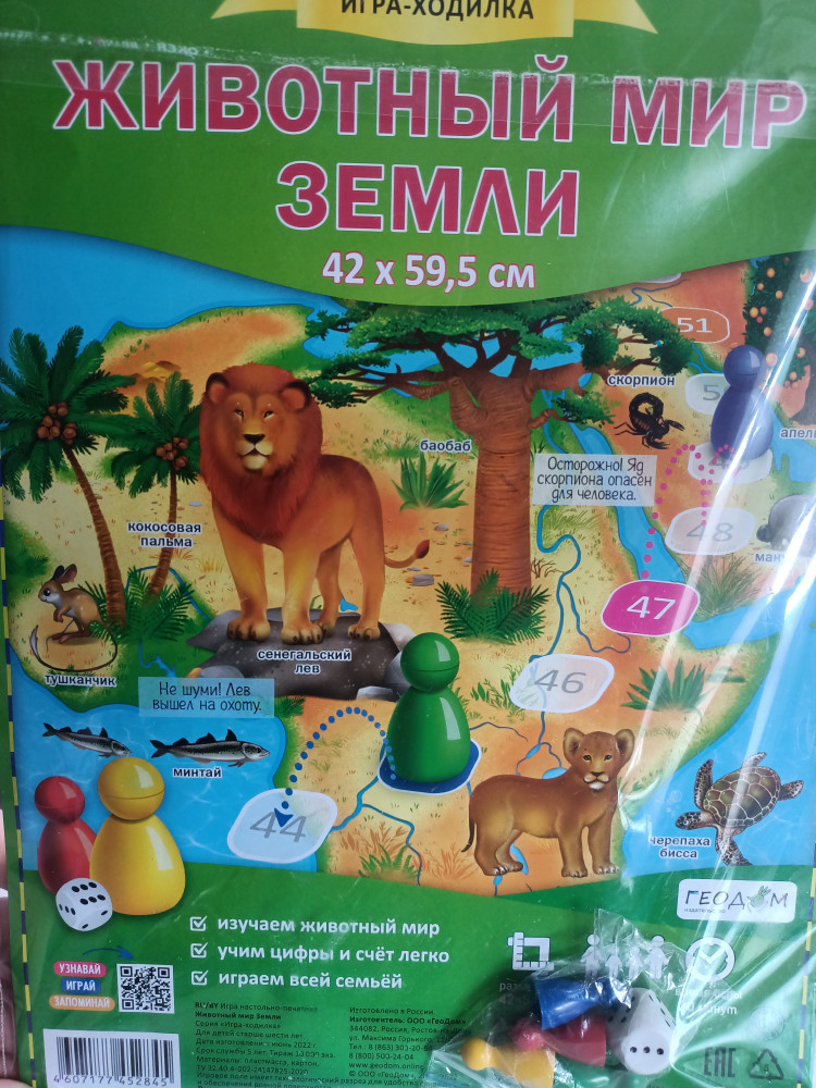 💳 Оплатить за товар можно при получении 🇰🇿 Есть бесплатная доставка по Казахстану от 1 дня 🎁 Копите бонусы с каждой покупки Игра-ходилка "Животный мир" разработана для игры всей семьёй или группой детей. В ней могут участвовать от 2 до 4 игроков. |