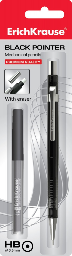 Erich Krause Карандаш автоматический «Black Pointer» (0,5 мм, 20 грифелей)-20% +36 удобный захват запасные грифели тонкий грифель мягкий грифель грифель не ломается