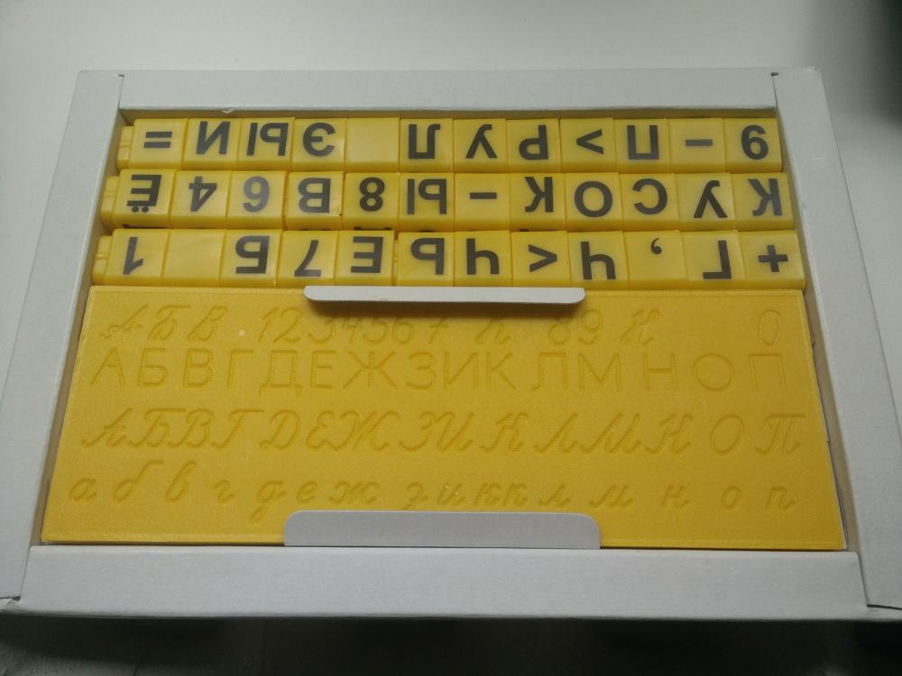 Кубики не все идеально скрепляются и оттенок пластика немного отличается. Кубиков мало - не очень годится для составления нескольких слов сразу. Шаблон для письма адекватного качества.