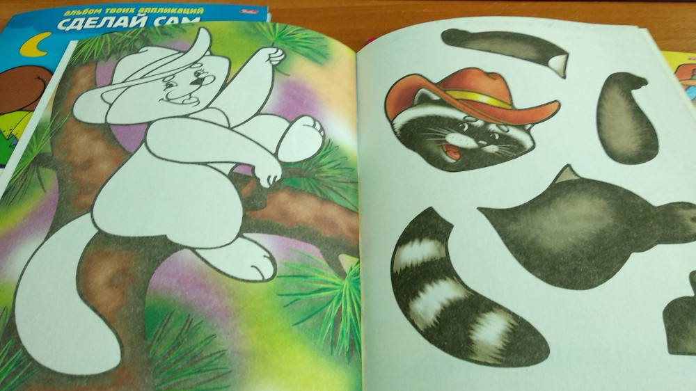 Первое, что бросается в глаза, это то что книга не соответствует заявленному размеру, в ширину она шире, в высоту ниже чем А5. Высота 20 см, ширина 16 см. Картинки аппликаций яркие лишь на обложке, внутри цвета рисунков не насыщенные, бледные, полное разочарование. В живую, картинки намного тусклее, чем на фото, будто выцветшие.