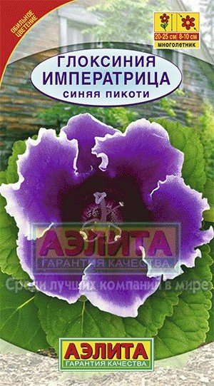 Аэлита Семена. Глоксиния гибридная «Императрица F1», синяя пикоти, 5 штВ данный момент этот товар отсутствует в продаже. Возможно, у нас найдется аналогичный или похожий товар здесь. Серия: Драже в пробирке Современный обильноцветущий гибрид глоксинии с крупными бархатистыми колокольчатыми цветками Ø8-10 см. Растения образуют компактные розетки листьев Ø20-25 см, с возвышающимися над ними шикарными букетам цветов. |