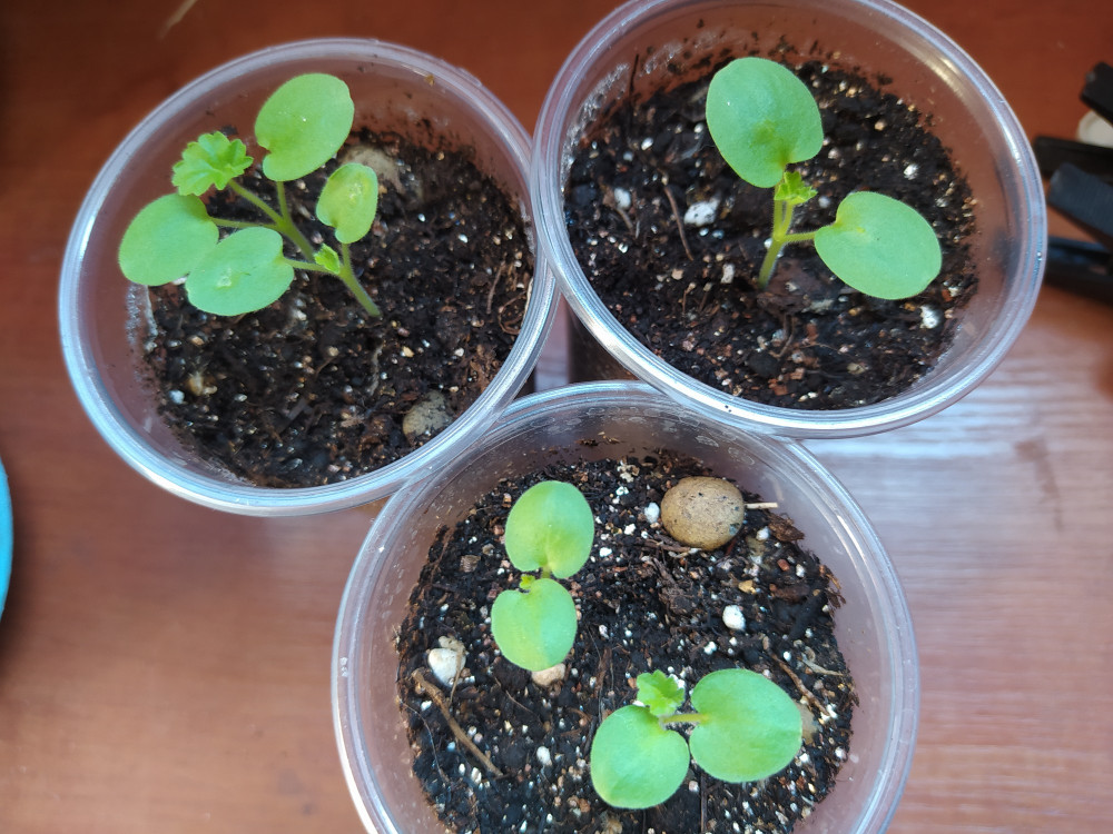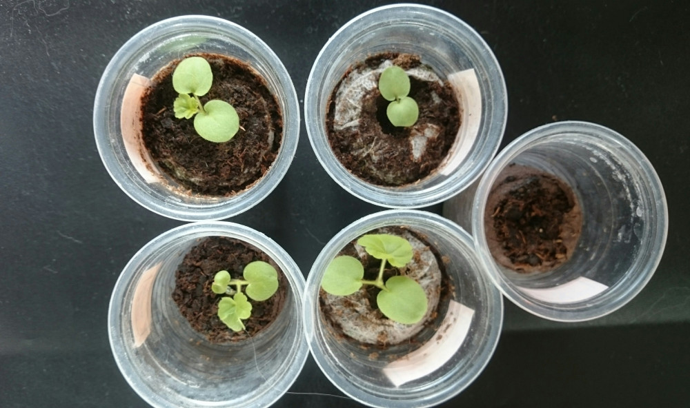 Семена проросли через два дня, 2 из 5. На 12-ый день уже виден первый настоящий листик, росточки крепенькие с хорошей корневой системой.