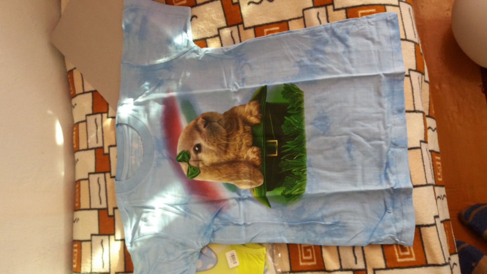 Размер футболки соответствует таблице размеров, рисунок не слишком яркий, но и не бледный. Доставка произведена в срок. После 5 стирок не потеряла ни цвет, ни форму, ни наклейку... что, конечно очень радует! Не понравилось, вот что: 1) цвет материала мутноватый, а не небесно-голубой с разводами, как на картинке. 2) качество хлопка рыхловатое, будто вата, хотелось бы покачественнее. Но, ребенку нравится, и слава Богу.