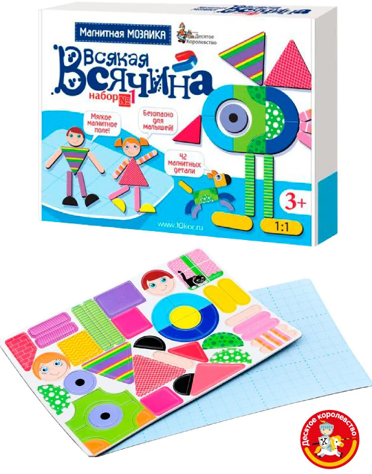 Десятое королевство Магнитная мозаика "Всякая всячина-1", 42 элемента-25% +55 интересная мозаика аккуратно выполнена мощные магниты мягкий конструктор