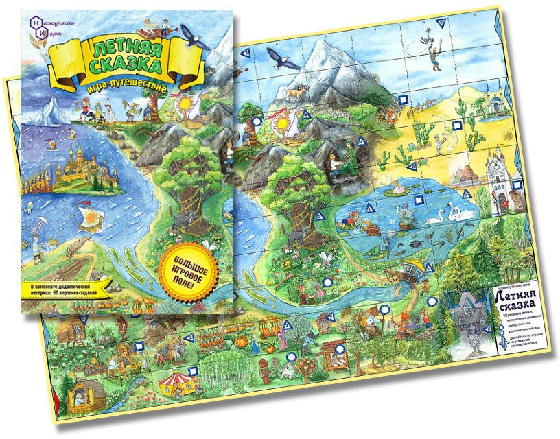 Очередность ходов игроков определяется с помощью считалочки или броска кубика. Количество ходов по полю определяется броском кубика. В процессе игры встречаются условные значки изменения хода игры (например, пропустить ход, пройти назад или вперёд на определённое количество ходов). Выиграет тот, кто первый дойдёт до кукольного театра «Молния». Игра «Летняя сказка» поможет детям познавательно провести свободное время. Но без помощи взрослого им не обойтись! |