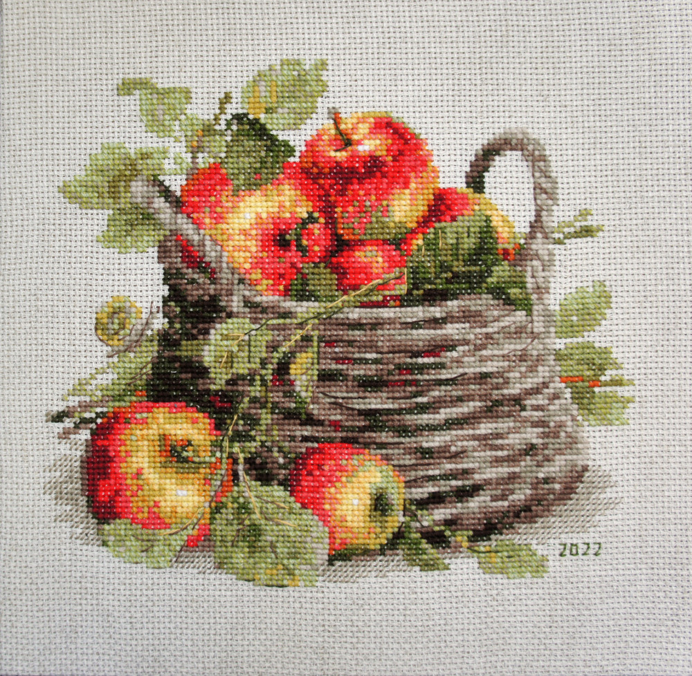 Набор для вышивания крестиком "Спелые яблоки"-20% +57 шерстяные нитки крупная канва яркие цвета легко вышивается