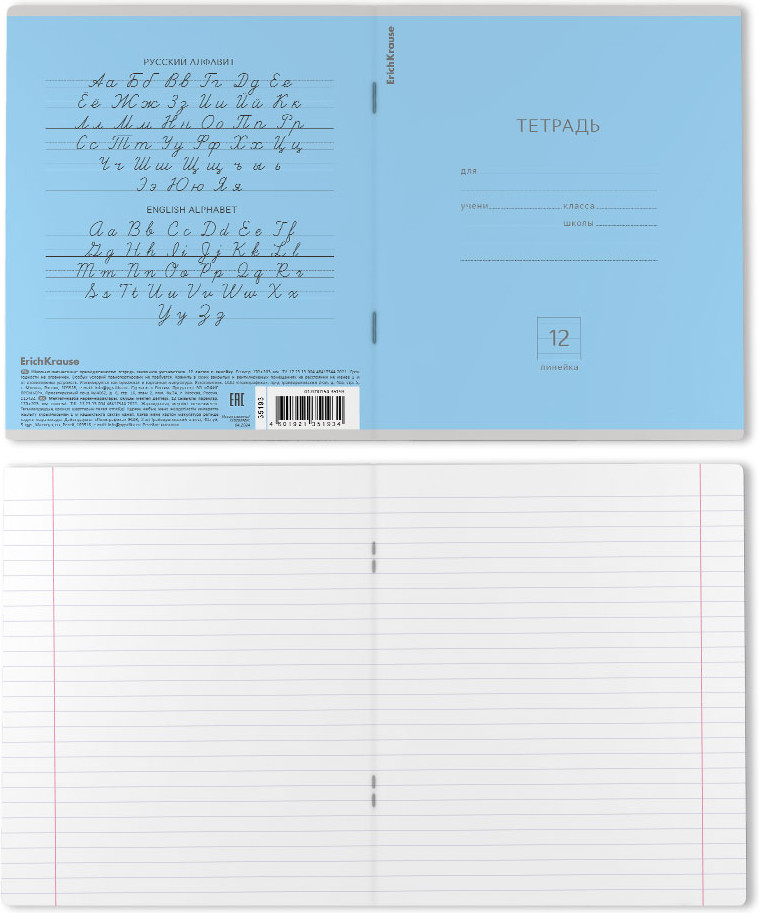 Полиграфика Тетрадь школьная «Классика», 12 листов, линейка, голубой-20% +5 плотная обложка белые листы чёткая линовка глянцевая обложка тегкая/приятная бумага