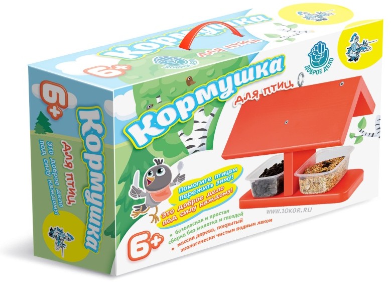 В данный момент этот товар отсутствует в продаже. Возможно, у нас найдется аналогичный или похожий товар здесь. Серия: Доброе дело Безусловно, любая кормушка, в которой регулярно появляется корм – это замечательно, даже если она сделана из молочного пакета или пластиковой бутылки. Главное – она выполняет свое предназначение и сделана своими руками, точнее – вашими руками (ведь вы, скорее всего, не дадите ребенку острый нож прорезать в пластике отверстия и сделаете это сами, а ребенок будет вам «помогать», т.е. сидеть рядом).