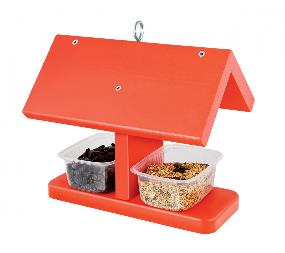 Кормушка изготовлена из массива дерева, окрашена, собирается с помощью винтов, лотки для корма крепятся с помощью морозостойкого двустороннего скотча (все в комплекте).