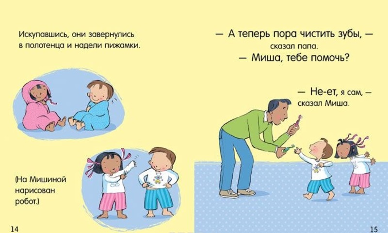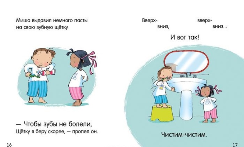 Первая книга из данной серии, которую приобрели. Решили собрать все истории про Мишу и Машу. Отличное качество, не сложный текст. Рекомендую читать непослушным деткам, положительно влияет, вскоре ребенок сам начинает чистить зубы и спать ложиться вовремя!