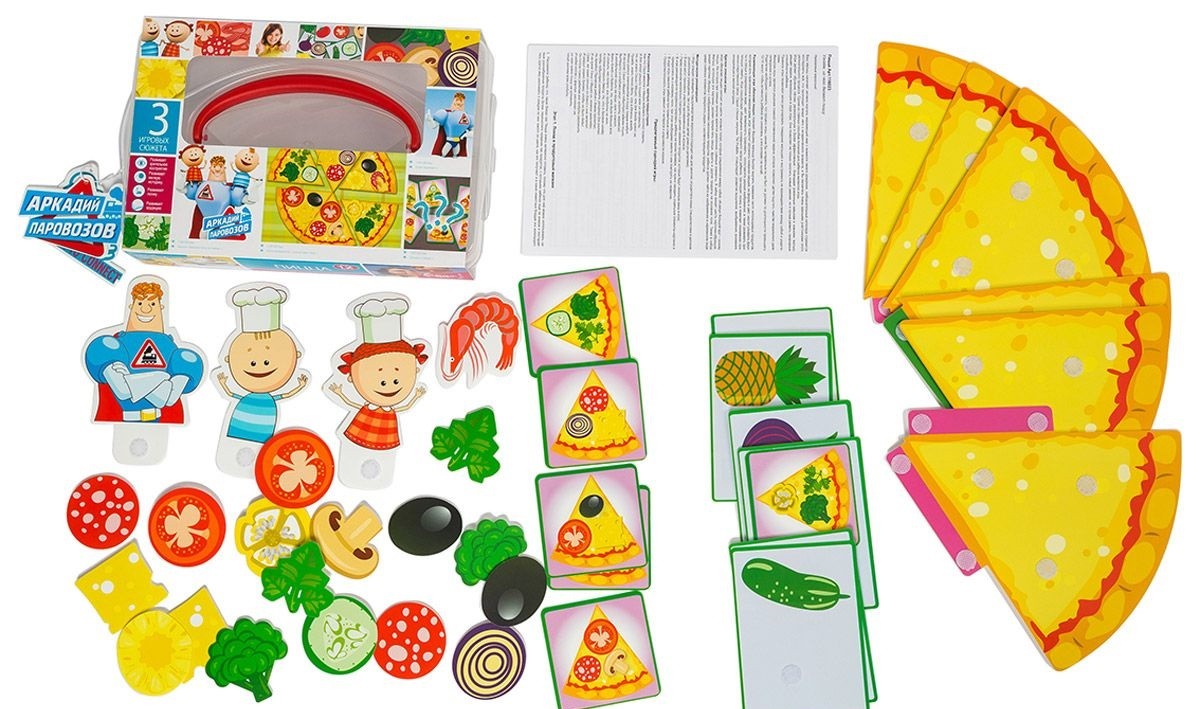 Аркадий Паровозов. Пицца. ПикнМикс. Липучки.В данный момент этот товар отсутствует в продаже. Возможно, у нас найдется аналогичный или похожий товар здесь. Серия: Умные липучки Обучающая игра-пазл липучка из серии Аркадий Паровозов состоит из 6 игровых полей, в виде кусков пиццы. Прикрепляя на поля различные ингредиенты, игрок запоминает не только внешний вид, но также и названия различных продуктов, которые используются для приготовления пиццы. В процессе игры ребенок тренирует логику, память, расширяет свой словарны запас и кругозор. |