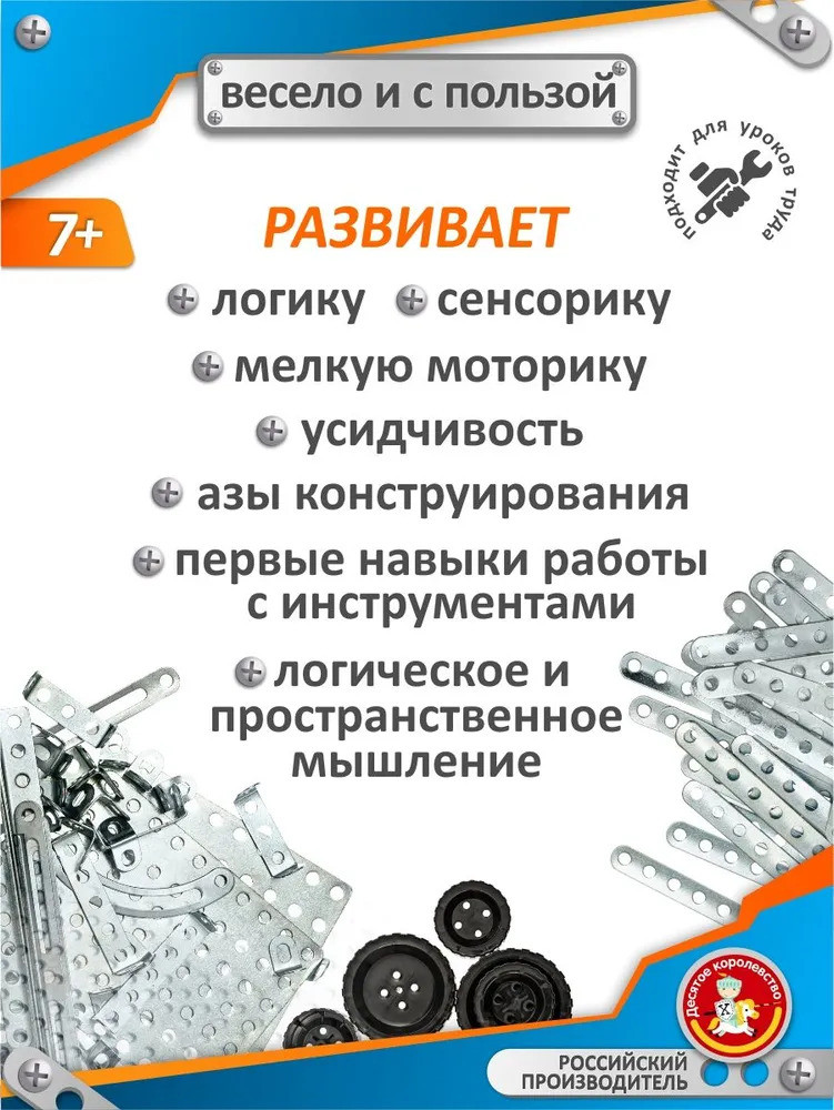 💳 Оплатить за товар можно при получении 🇰🇿 Есть бесплатная доставка по Казахстану от 1 дня 🎁 Копите бонусы с каждой покупки Комплектность набора позволяет собрать ребенку две модели. Помимо классических деталей из металла, в этот набор входят яркие пластиковые элементы, которые придадут моделям более "веселый" вид. В процессе работы Ваш ребенок научится пользоваться отверткой и ключом, а также инструкцией по сборке. Понаблюдайте за малышом некоторое время, и Вы быстро определите степень своего участия в процессе. В зависимости от возраста и уже имеющихся навыков, кого-то можно оставить наедине с конструктором на достаточно длительное время, а кому-то придется помогать практически постоянно. |