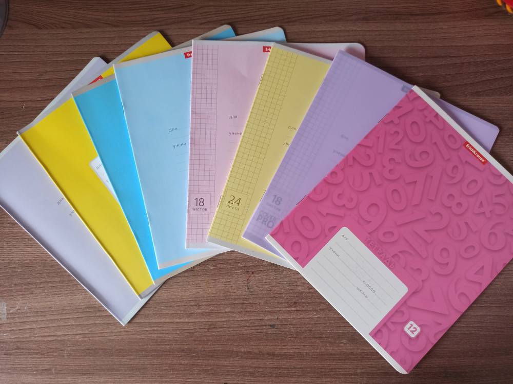 Заказывала много тетрадей 12, 18 и 24 листа. Цвета красивые, линовка чёткая. Всё понравилось. Ещё и домой привезли🤗 Спасибо большое!