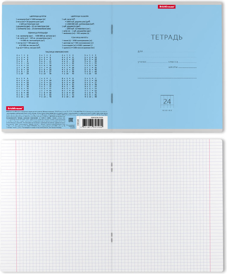 Полиграфика Тетрадь школьная «Классика», 24 листа, клетка, голубой-20% плотная обложка белые листы качественная бумага