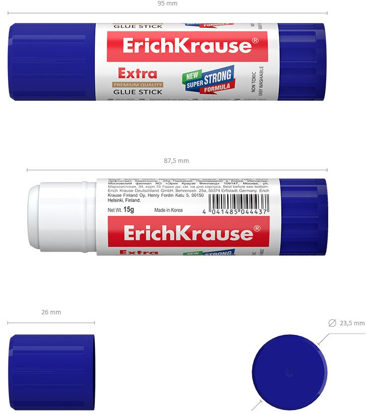 Erich Krause Клей-карандаш «ErichKrause», 8 грамм-20% +5 хорошее склеивание не высыхает удобное нанесение для бумаги свежий срок годности