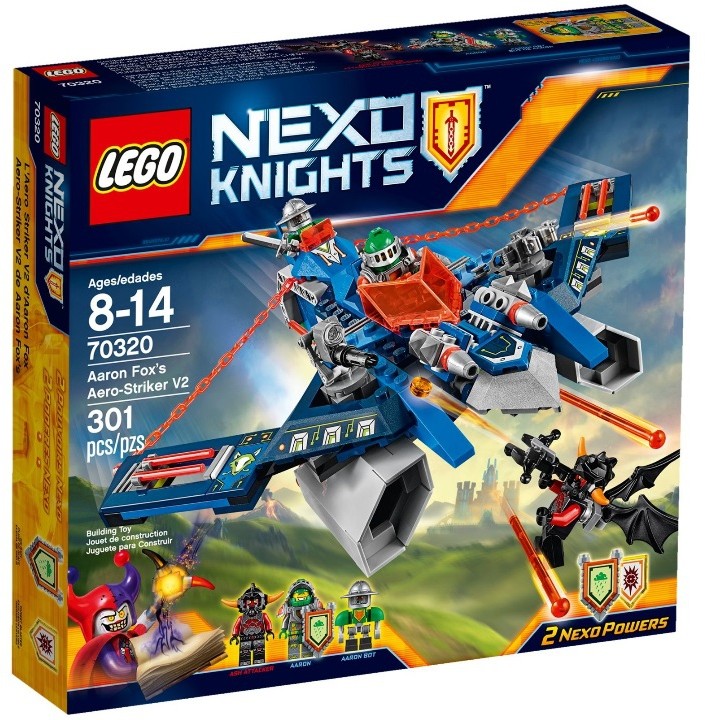 Аарона, который можно купить в нашем интернет-магазине состоит из 301 детали и включает 3 отличнейших минифигурки: самого жизнерадостного и весёлого рыцаря Нексо Аарона, его верного бота-оруженосца и, конечно же злодея Пепельного Охотника.