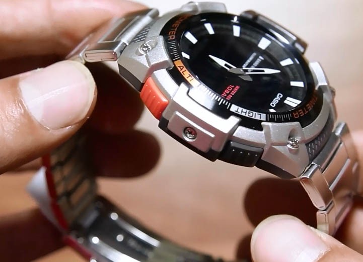 Встроенный цифровой компас определяет северный магнитный полюс. Встроенный датчик давления определяет изменения в атмосферном давлении и преобразовывает полученные результаты в абсолютную высоту до 10 000 м. Поверхность стекла часов является выпуклой. Это обеспечивает высокий уровень прочности и устойчивости к давлению.
