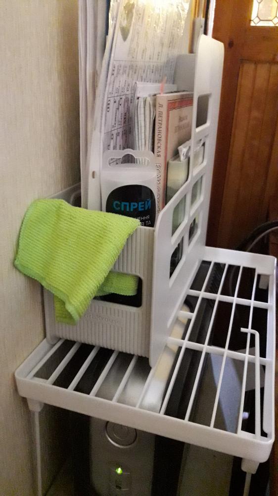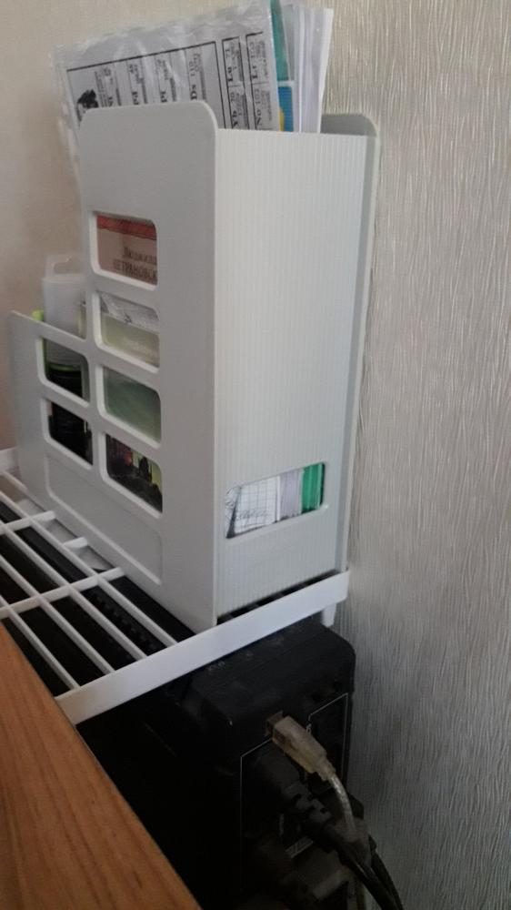 Крепкий вместительный лоток. За счет дизайна очень устойчив. Можно использовать любой стороной к себе, на боковую и низкую стенку можно что-то повесить. Очень довольна покупкой.