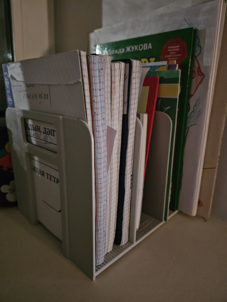 Очень удобная вещь! Все тетради я распределила по отсекам. Теперь могу легко найти нужную мне тетрадь. На столе порядок.