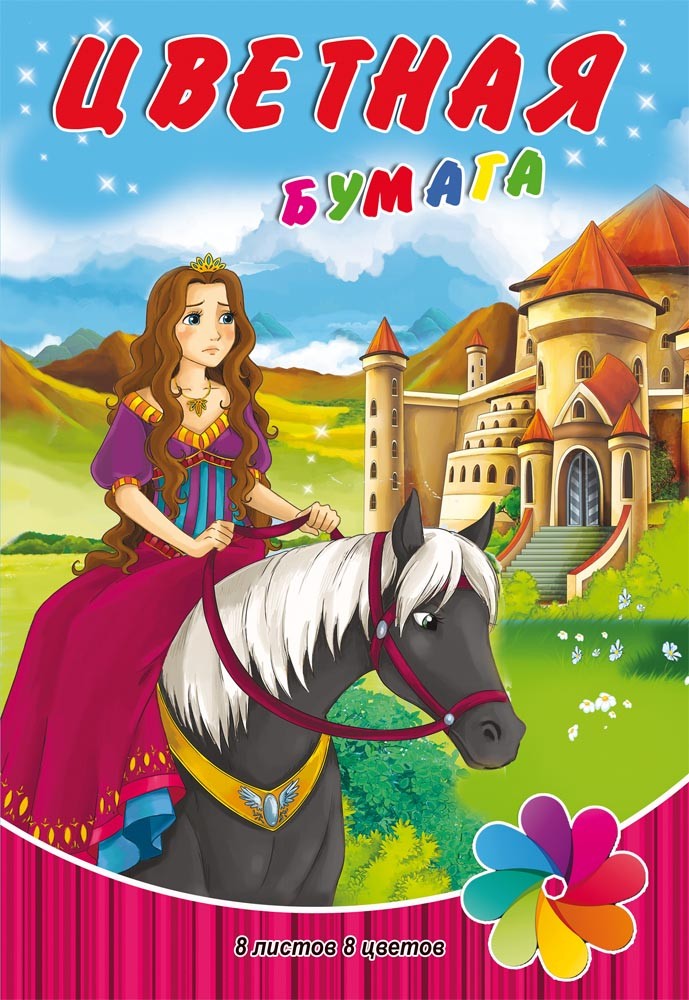 Отзывы «Бумага цветная «Принцесса на коне», 8 листов, 8 цветов, односторонняя»