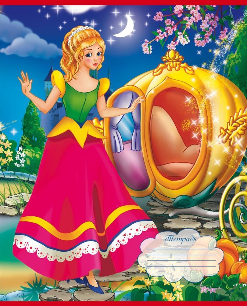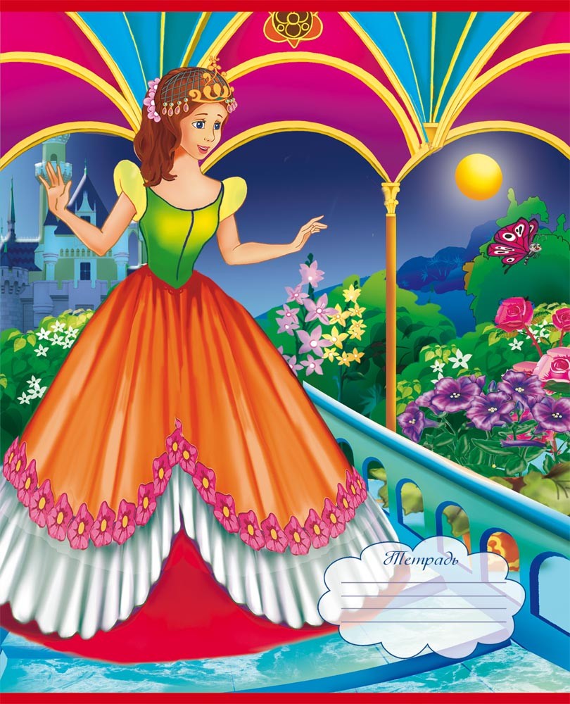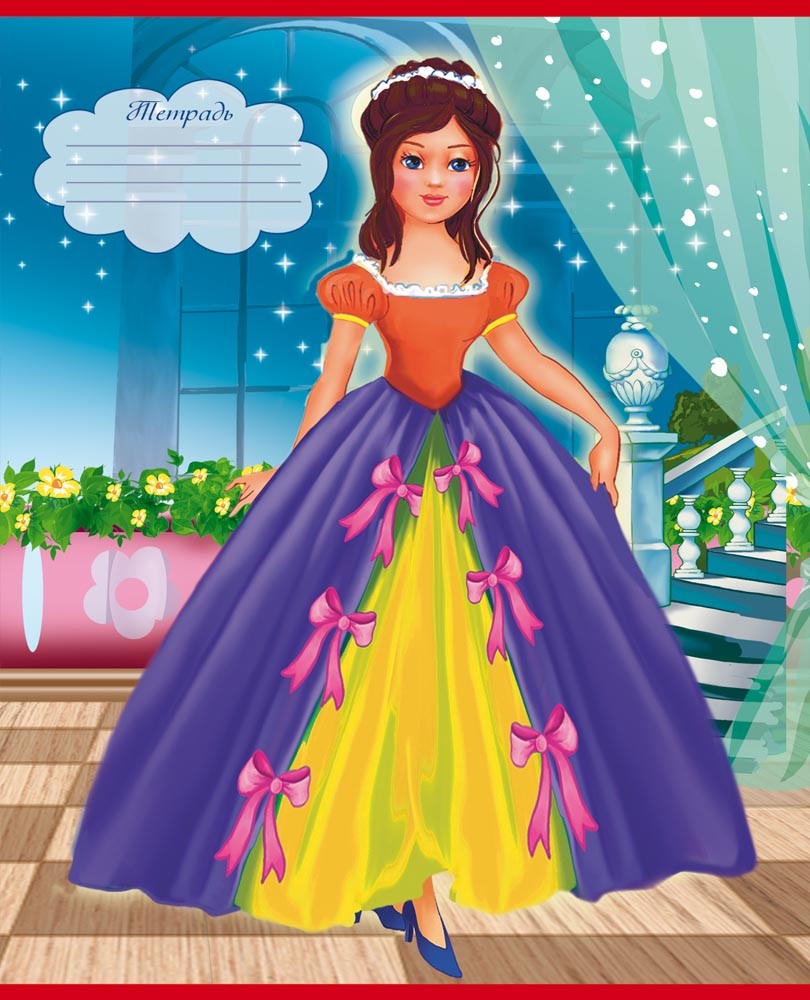 Хорошая тетрадь, на обложке платье принцессы и цветочки с блестками, что, кстати, не видно на фото, предлагаемое магазином