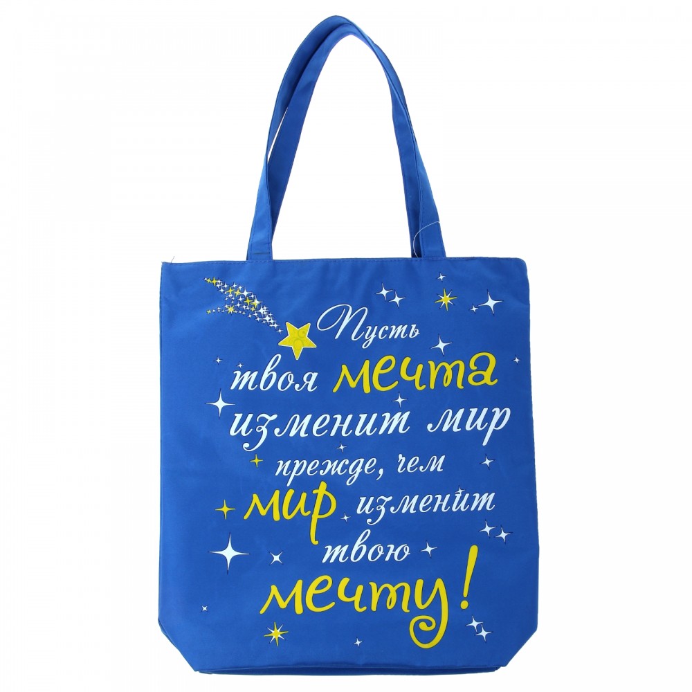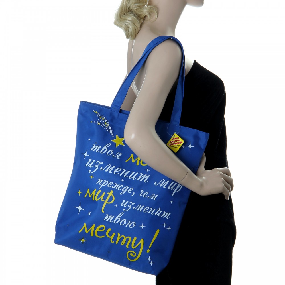 Сумка на молнии «Пусть твоя мечта» очень понравилась. Вместительная, легкая, из плотной водонепромокаемой ткани, есть внутренняя подкладка. Думаю, хорошо подойдет для прогулок, как городских, так и загородных. Ручки длинные, поэтому комфортно носить на плече. Возможно закажу еще одну, с другой надписью. Спасибо магазину Flip.