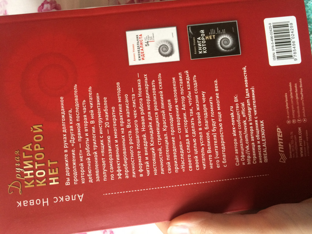 Другая книга, которой нет. 20 наиболее эффективных инструментов саморазвитияВ данный момент этот товар отсутствует в продаже. Возможно, у нас найдется аналогичный или похожий товар здесь. Серия: Сам себе психолог Вы держите в руках долгожданное продолжение. «Другая книга, которой нет» — прямой последователь дебютной работы и вторая часть заявленной трилогии. В ней читатель получает «ящик с инструментами» по саморазвитию — 20 наиболее эффективных и многократно апробированных на практике методов личностного роста. Все написано в формате пошагового чек-листа — читай и внедряй. Новая работа Новака настоящий Клондайк для неординарных личностей, стремящихся реализовать свой потенциал. Красной линией сквозь произведение проходит идея наследия — сотворения человеком своего следа в истории. Автор поставил своей целью сделать так, чтобы каждый читатель успел в своей жизни создать нечто Великое, благодаря чему его (читателя) будут помнить с благодарностью еще многие века. |