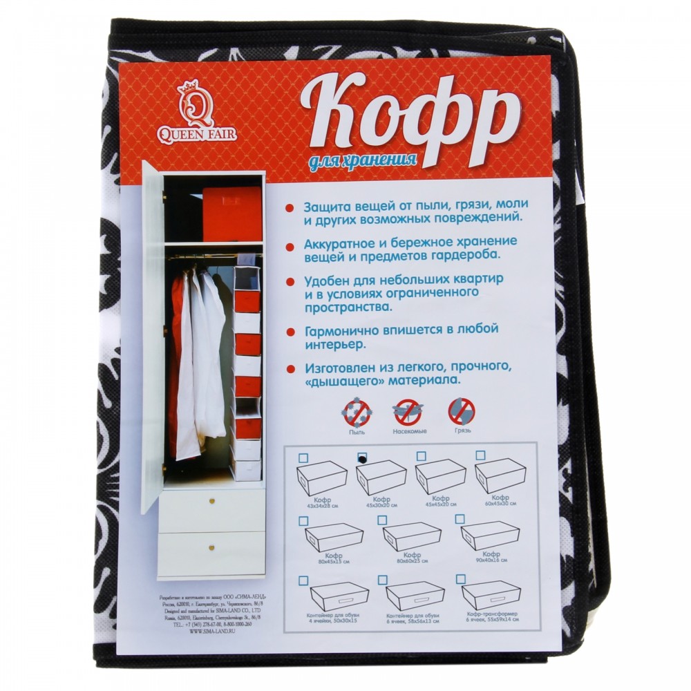 Хороший кофр. Подходит только для хранения вещей, самостоятельно форму держать не будет. Вместительный. Шкаф с такими кофрами смотрится аккуратнее.