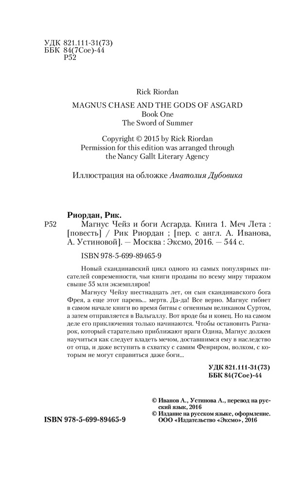 Купила книгу сыну-подростка. Он прочитал за два дня. Очень понравилась, уже готов читать продолжение. Я и сама читаю книги Р. Риордана, потом с сыном делимся впечатлениями. Товар пришёл вовремя, очень качественный.