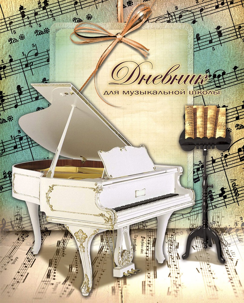 | Дневник для музыкальной школы «Белый рояль и пюпитр», 48 листов