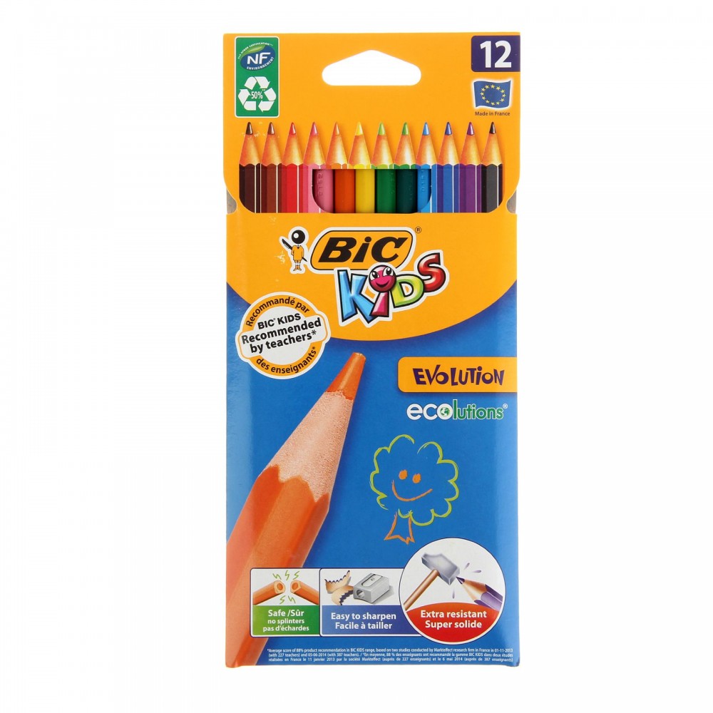 Bic Карандаши цветные «Kids Evolution ECOlutions», 12 цветов+87 качество карандашей легко точатся яркие цвета