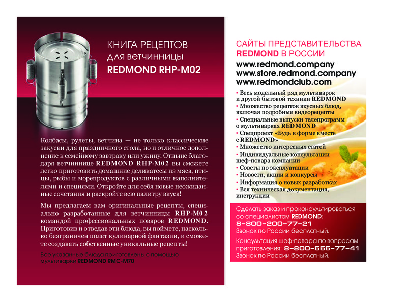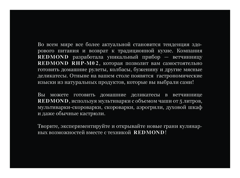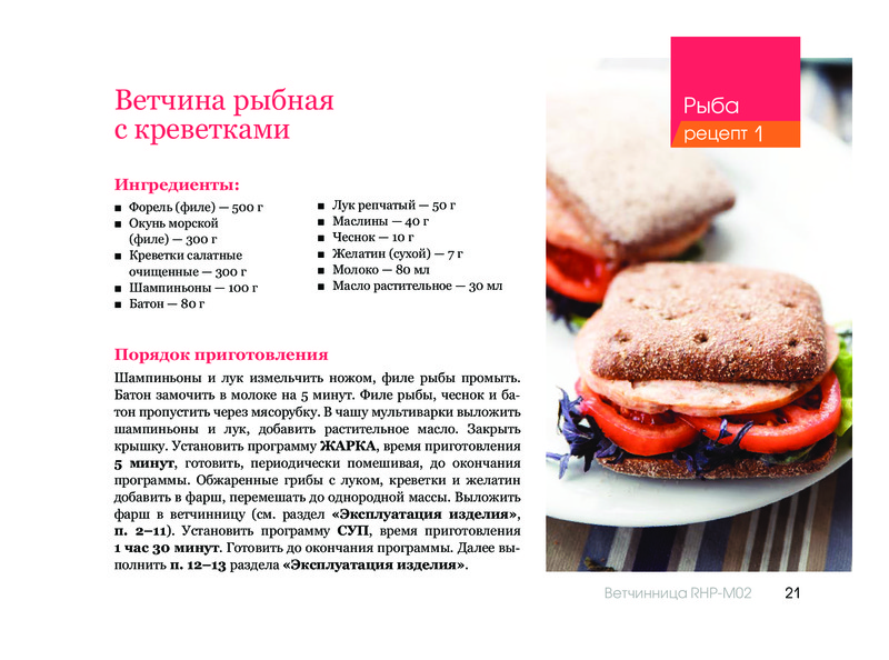 Redmond Ветчинница RHP-M02В данный момент этот товар отсутствует в продаже. Возможно, у нас найдется аналогичный или похожий товар здесь. Ветчинница REDMOND RHP-M02 - уникальный прибор, благодаря которому вы легко сможете приготовить домашние деликатесы из мяса, рыбы, птицы и морепродуктов с различными дополнениями и специями. Отныне на вашем столе появятся настоящие гастрономические изыски из натуральных продуктов, которые вы выбрали сами! |