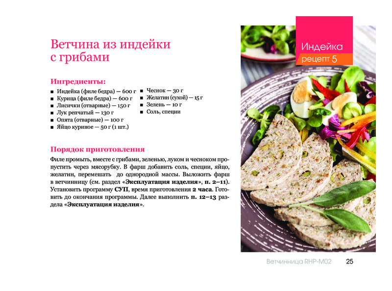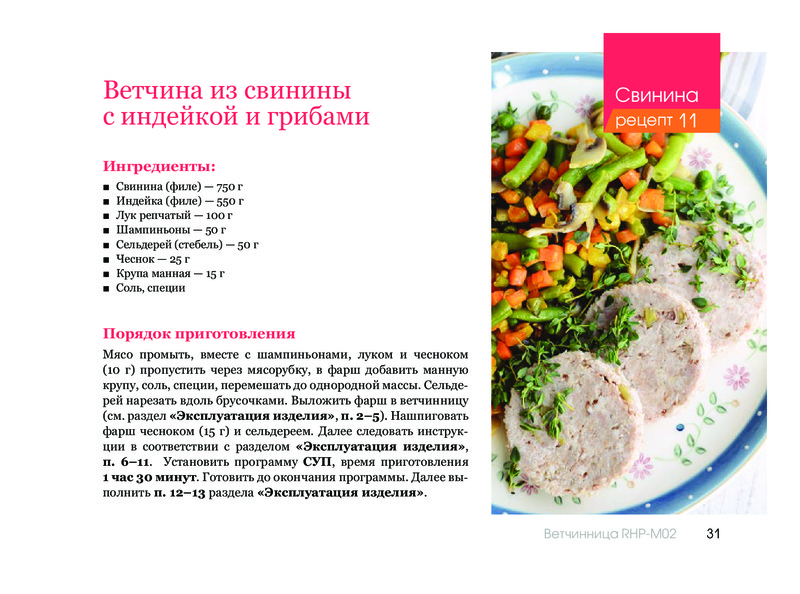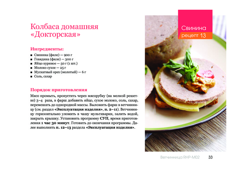 Ветчинница очень проста в использовании, пользуюсь часто, все получается, для тех, кто не хочет травиться магазинной колбасой нужная вещь! Рецепты составляю сам на глаз, каждый раз что-то получается новое и вкусное! А главное полезное, и я сам знаю, что кроме чистого мяса или курицы там ничего нет!