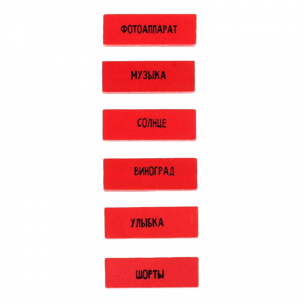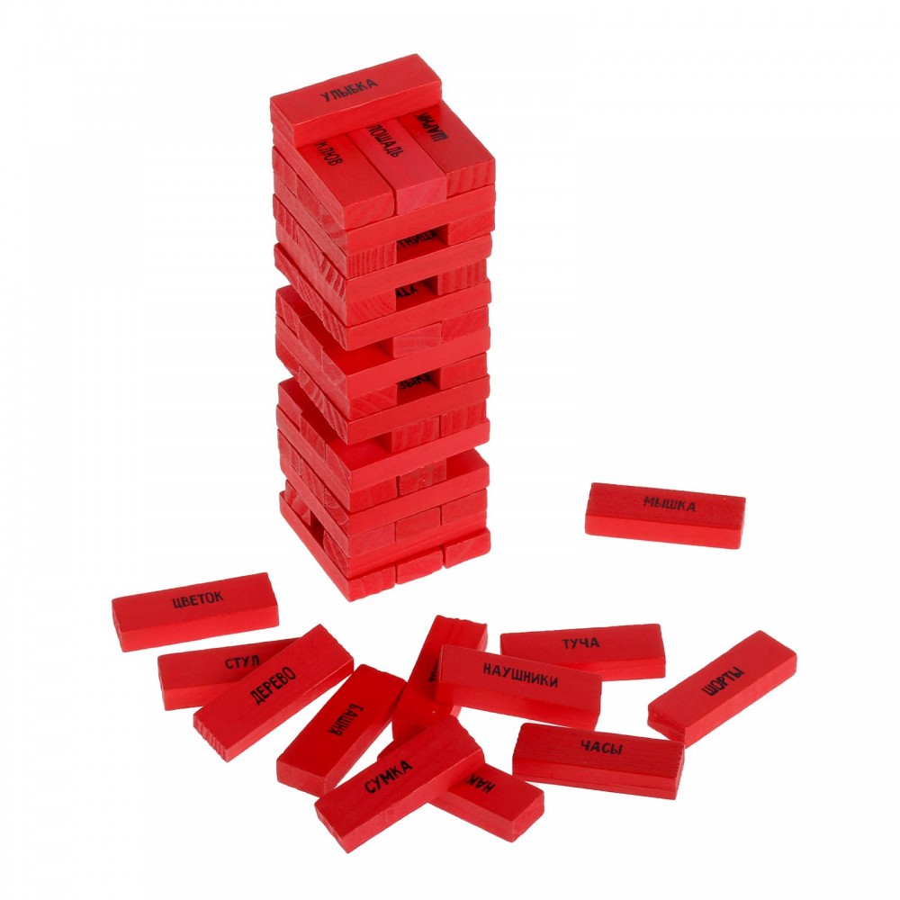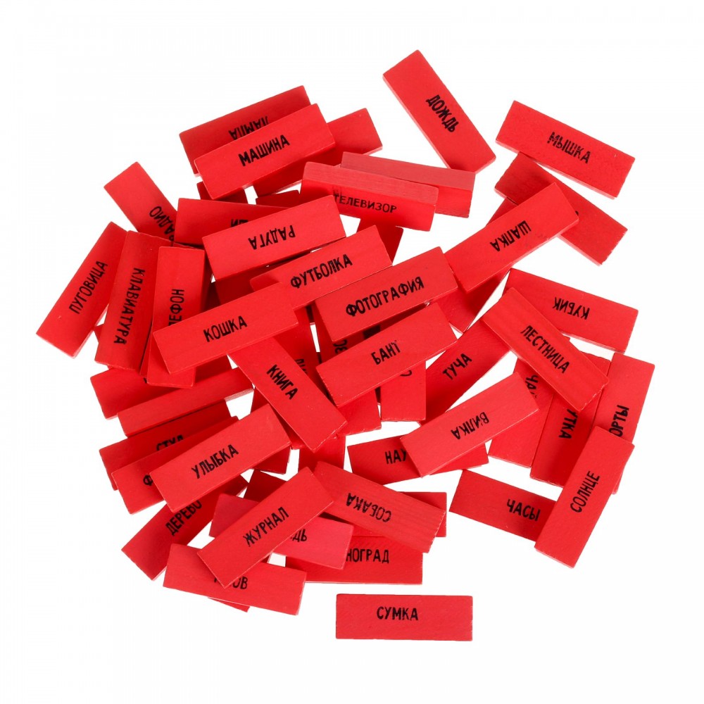 Постройте башню из брусков и-и-и… вытягивайте по одной штучке из башни так, чтобы последняя не упала. На каждом элементе вы найдёте слова и приклеенные вами картинки. Именно они подскажут, какими способами нужно объяснять слова с брусков.